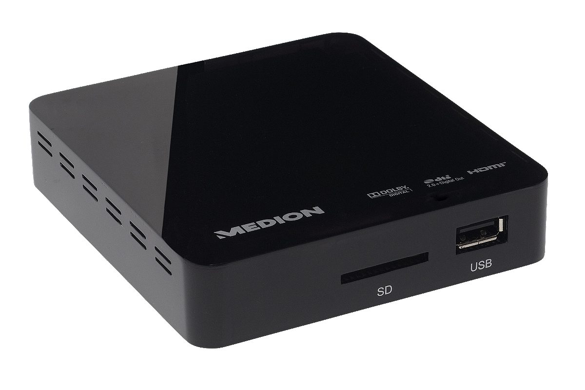 Medion E85023 Lecteur Multimedia HD (MD 86569). Цвет товара: Черный. Совместимые карты памяти: Memory Stick (MS), MMC, MS PRO, SD, SDHC. Поддерживаемый видеоформат: AVI, DAT, ISO, MKV, MOV, MP4, MPEG, MPG, TS, VOB, WMV, Поддерживаемые форматы изображения: BMP, GIF, JPG, PNG, TIF, Поддерживаемые форматы субтитров: ass, smi, srt, ssa, sub