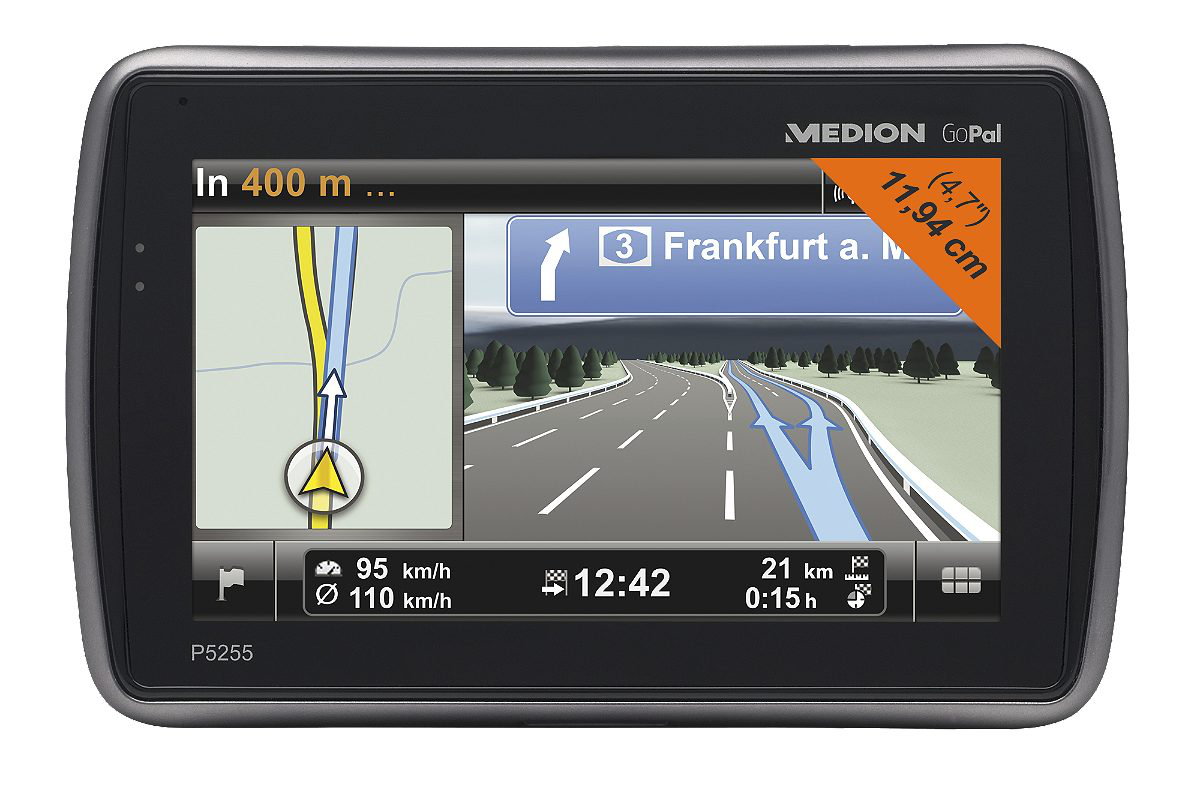 Medion GoPal P5255 EU+ (MD 97674). Антенна: Внутренний. Покрытие карты: Вся Европа, Map view options: 2D/3D. Дисплей: TFT, Разрешение экрана: 480 x 272 пикселей, Поддерживаемое размещение: Горизонтально. Тип носителя памяти: Флеш, Совместимые карты памяти: SD. Модель процессора: SiRFstar