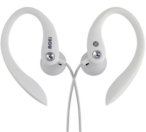 Moki Sports. Тип наушников: Вкладыши, Стиль ношения: Заушины, Частота наушников: 20 - 20000 Гц. Технология подключения: Проводная, Интерфейс устройства: 3,5 мм (1/8"). Цвет товара: Белый