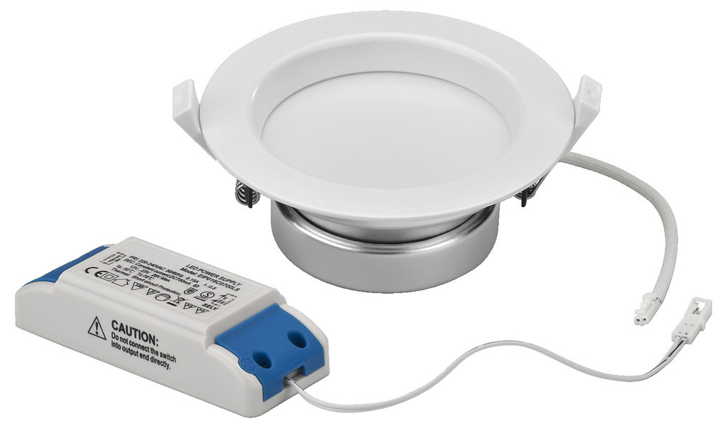 Monacor LDD-14/WWS. Назначение: Для помещений, Цвет товара: Белый, Цвет стекла: Белый. Мощность лампы, поставляемой в комплекте: 14 Вт, Световой поток: 950 лм, Тип ламп(ы) в комплекте: LED. Угол луча: 120°. Тип источника питания: Кабель переменного тока, Класс энергоэффективности: A+, Входящее напряжение сети: 230 В. Высота: 57 мм, Диаметр: 13,8 см