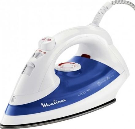 Moulinex inicio 30. Тип: Dry & Steam iron, Емкость водного резервуара: 0,2 л. Потребляемая мощность утюга: 1600 Вт