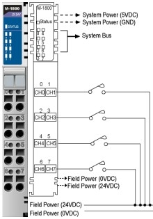 Moxa M-1800: 8 Digital inputs, sink, 24 VDC
