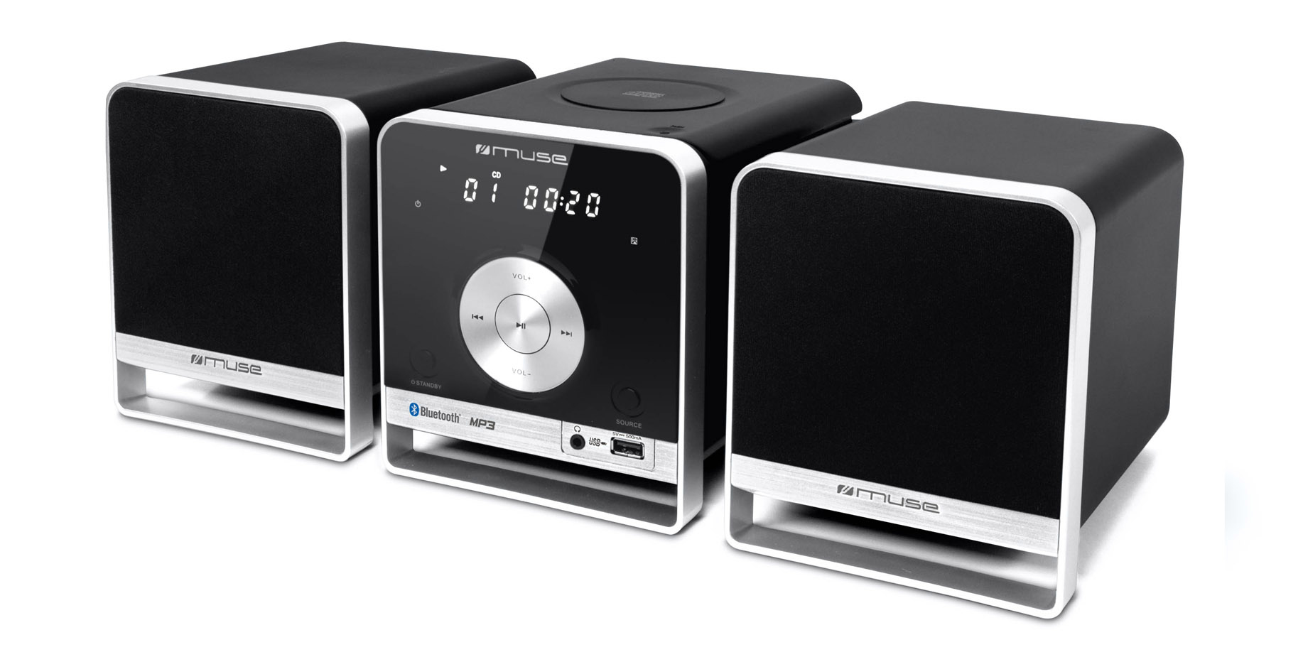 Muse M-55 BT. Тип: Home audio micro system, Цвет товара: Черный, Белый, Число дисков: 1 дисков. Номинальная RMS-мощность: 20 Вт, Тип колонок: 2-полосная, Полное сопротивление: 8 Ом. Поддерживаемые диапазоны радио: FM,PLL. Цвет подсветки: Белый, Тип дисплея: ЖК. Порт подключения наушников: 3,5 мм