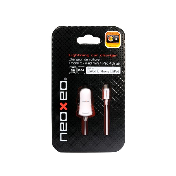 Neoxeo X250A25024. Тип зарядного устройства: Авто, Совместимые устройства: Смартфон, Планшет, Тип источника питания: Прикуриватель. Цвет товара: Белый, Длина кабеля: 1 м. Выходной ток адаптера: 2,1 А. Тип упаковки: Блистер