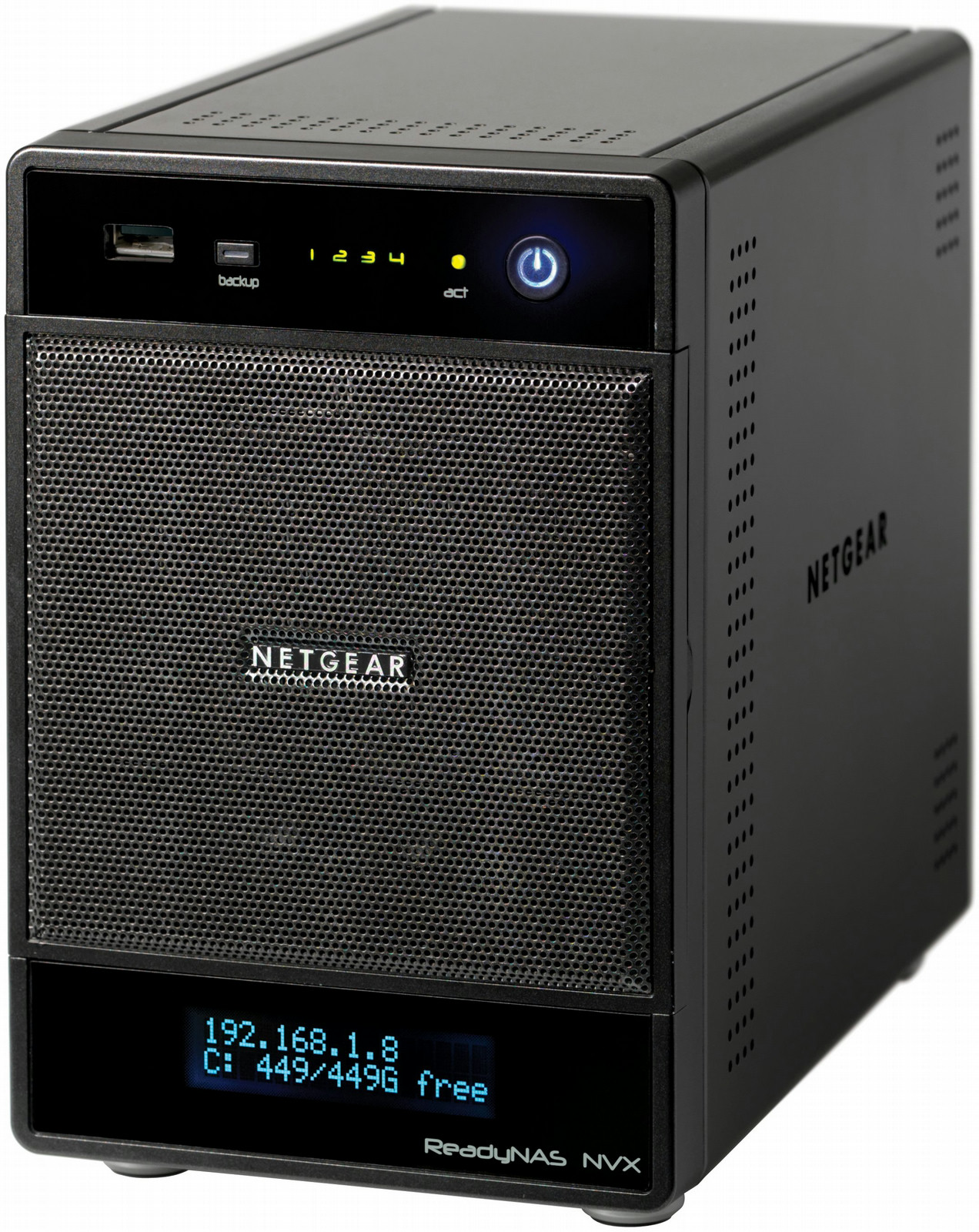 Netgear RNDX4420+BEX. Общий установленный объем хранения: 8000 ГБ, Интерфейс носителя памяти: SATA, Емкость накопителя: 2000 ГБ. Внутренняя память RAM: 1 ГБ, Тип RAM-памяти: DDR2. Мощность блока питания: 200 Вт. Вес: 4,6 кг. Размеры (ШхГхВ): 200 x 132 x 222 мм, Требования к питанию: AC 100 - 240 V, 50/60 Hz