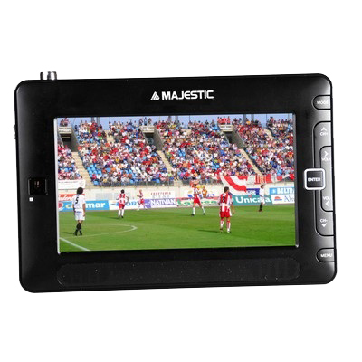 New Majestic TVD-734 TFT USB REC. Тип тюнера: Аналоговый и цифровой, Система аналогового формата сигнала: NTSC, PAL, Система цифрового формата сигнала: DVB-T. Поддерживаемый видеоформат: MPEG, Поддерживаемые форматы аудио: MP3, WMA, Поддерживаемые форматы изображения: JPG. Технология батареи: Литиевая