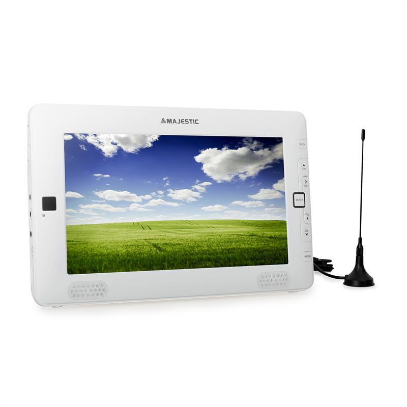 New Majestic TVD-934N. Технолигия дисплея: ЖК, Диагональ экрана: 22,9 см (9"). Тип тюнера: Аналоговый и цифровой, Система аналогового формата сигнала: NTSC, PAL, Система цифрового формата сигнала: DVB-T. Версия USB: 2.0, Порт подключения наушников: 3,5 мм. Поддерживаемый видеоформат: MPEG2, MPEG4, Поддерживаемые форматы аудио: MP3, WMA, Поддерживаемые форматы изображения: JPG. Совместимые карты памяти: SD