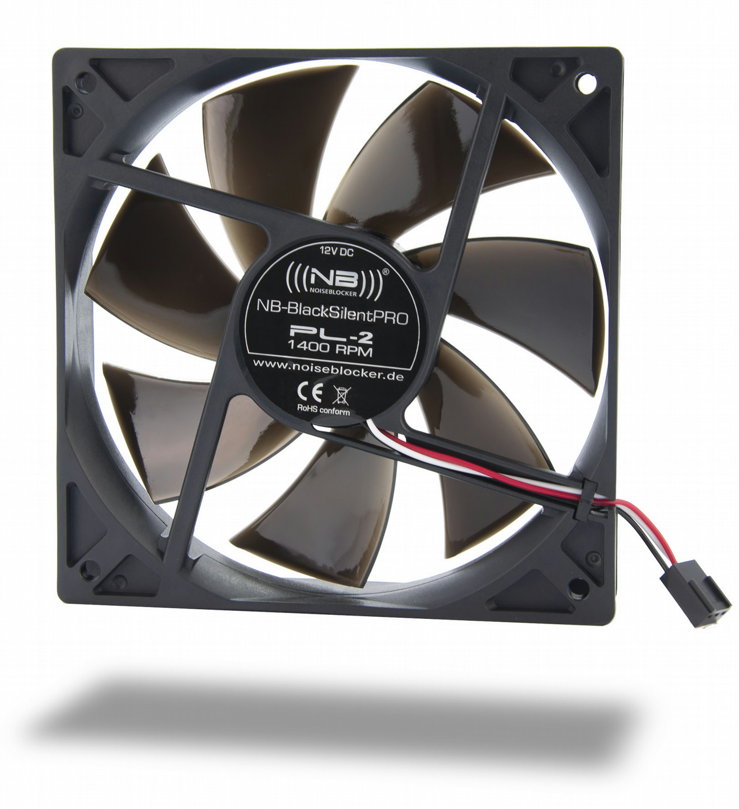 Noiseblocker PL2. Подходит для: Корпус компьютера, Тип: Вентилятор, Уровень шума (высокая скорость): 20 дБ. Цвет товара: Черный, Материал: Пластик. Номинальный ток: 0,16 А, Потребляемая мощность (в обычном режиме): 1,92 Вт. Вес: 120 г. Размеры (ШхГхВ): 120 x 120 x 25 мм, Скорость вращения: 1400 об/мин