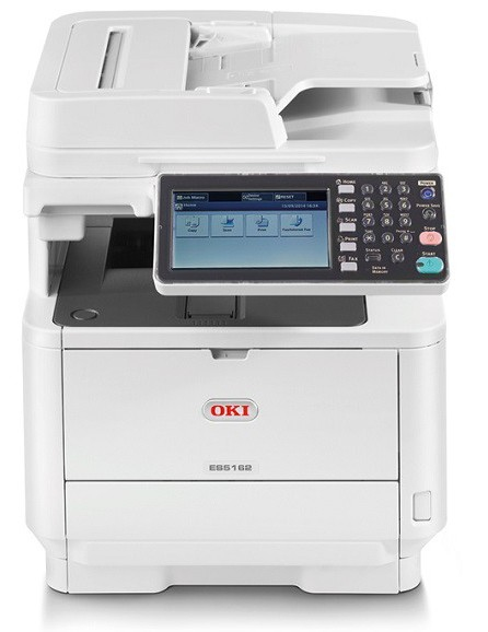OKI ES5162. Технология печати: Лазерный, Печать: Mono printing, Копирование: Mono copying. Скорость печати (ч/б, обычное кач., A4/US Letter): 45 стр/мин, Максимальное разрешение: 1200 x 1200 dpi, Время выхода первой страницы (ч/б, норм. качество): 4,5 сек. Максимальное разрешение копирования: 600 x 600 dpi, Скорость копирования (обычное кач., ч/б, A4): 37,5 коп/мин, Масштабирование копии: 25 - 400%. Разрешение оптического сканирования: 600 x 600 dpi, Тип сканирования: Планшетный + ADF, Сканировать в: CIFS, Электронная почта, FTP, HTTP, TWAIN, USB. Скорость передачи факса: 2 с/стор, Скорость модема: 33,6 кбит/с, Память факса: 4 МБ