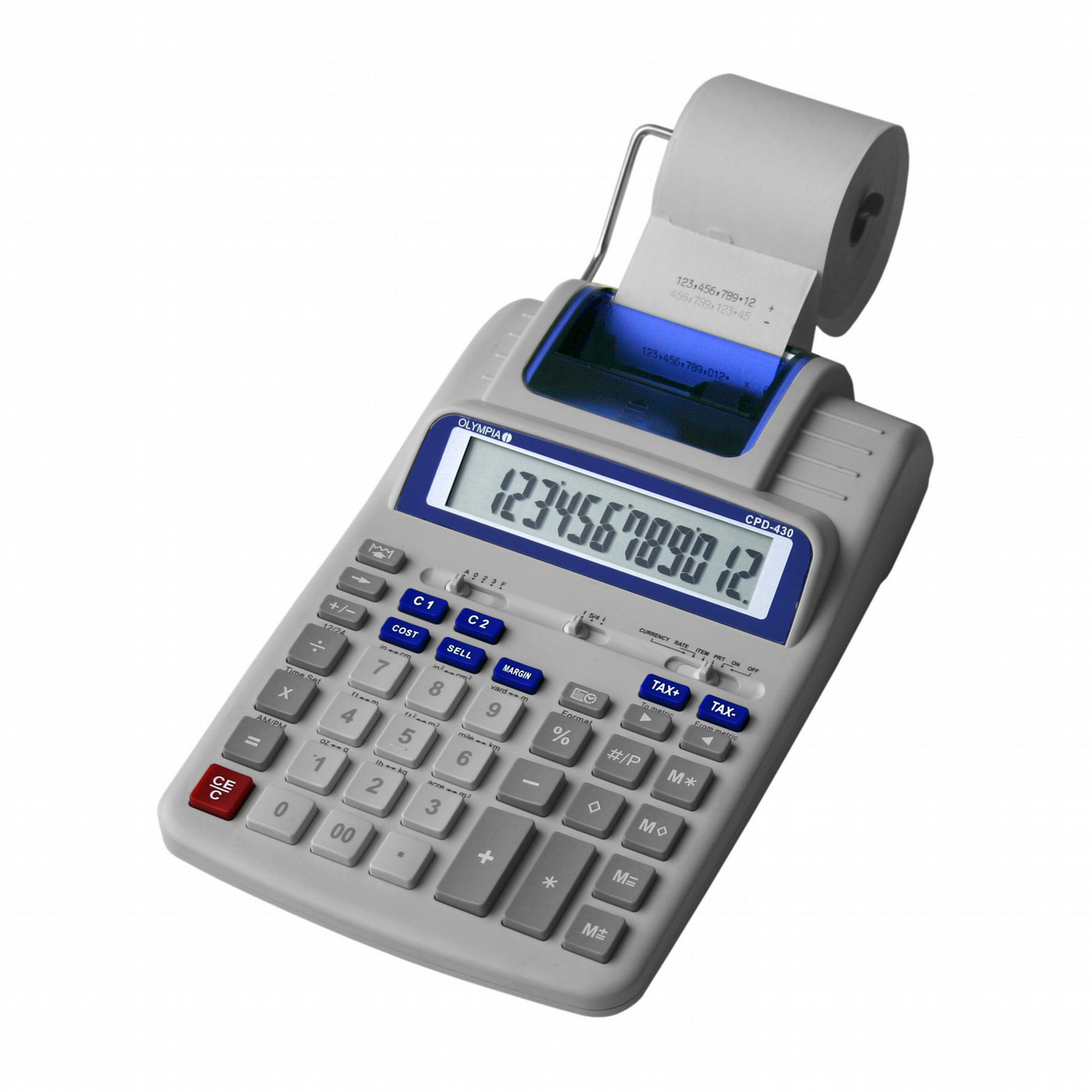 Olympia CPD 430. Формат: Настольный, Тип: Printing calculator. Отображение количества строк: 1 линий. Тип печати: Копировальная лента, Скорость печати: 138 линий/мин, Ширина рулона: 5,7 см. Вес: 420 г, Размеры (ШхГхВ): 148 x 240 x 58 мм