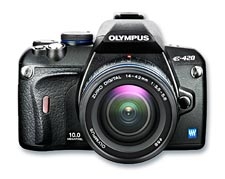 Olympus E-420. Мегапиксели: 10 МП, Тип камеры: Однообъективный зеркальный фотоаппарат с объективом, Тип сенсора: CMOS. Оптическое увеличение: 3x, Фокусное расстояние: 14 - 42 мм, Структура линзы (элементы/группы): 3/4. Режимы световой экспозиции: Авто, Руководство. Режимы вспышки: Авто, Временная замена, Выключенная вспышка, Руководство, Cнижение эффекта красных глаз, Медленная с. Совместимые карты памяти: CF, microdrive, xd