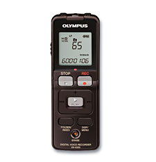 Olympus VN-6500. Максимальное время записи: 40,3 ч, Время воспроизведения: 15 ч. Оперативная память: 1024 МБ. Размер дисплея (ГхВ): 24,8 x 24 мм. Диаметр динамика: 2,3 см. Время работы батареи в режиме записи: 39 ч