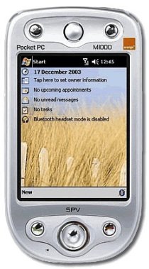 Orange SPV M1000. Диагональ экрана: 8,89 см (3.5"), Разрешение экрана: 240 x 320 пикселей, Видимая область экрана (ГхВ): 53,4 x 71,2 мм. Оперативная память: 128 МБ, Тип внутренней памяти: SDRAM, Флэш-память: 64 МБ. Тактовая частота процессора: 400 МГц, Встроенный процессор: PXA263. Разрешение фотоаппарата: 640 x 480 пикселей, Мегапиксели: 0,31 МП, Разрешение видеозахвата: 320 x 240 пикселей. Колонки: Моно