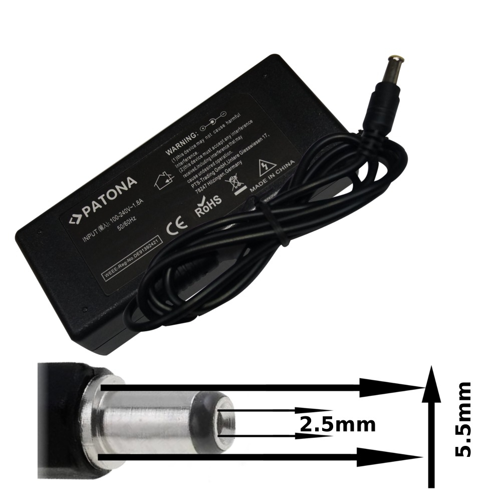 PATONA PT2504. Входное напряжение: 100-240, Частота входного сигнала: 50/60, Выходная мощность: 90 Вт. Тип подачи питания: Для помещений, Предназначение: Ноутбук, Тип тока: Переменный ток в постоянный ток. Цвет товара: Черный