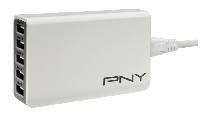 PNY P-AC-5UF-WUK01-RB. Тип зарядного устройства: Для помещений, Совместимые устройства: Универсальный, Тип источника питания: Кабель переменного тока. Цвет товара: Серый, Белый. Входное напряжение: 100 - 240, Максимальная мощность: 25 Вт. Ширина: 9,8 см, Глубина: 6,1 см, Высота: 2,6 см. Поставляемые кабели: Кабель переменного тока