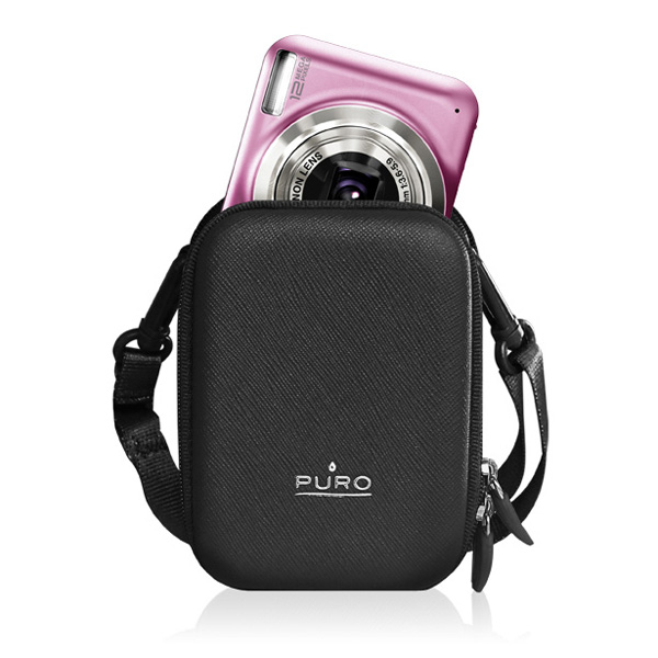 PURO PUFF004. Тип: Camera hard case, Цвет товара: Черный, Материал: Нейлон. Ширина: 65 мм, Глубина: 100 мм, Высота: 25 мм