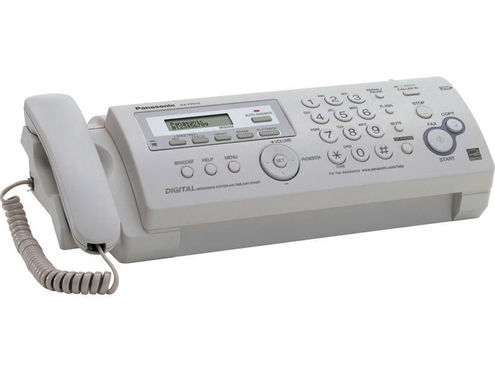 Panasonic KX-FP215. Скорость передачи факса: 8 с/стор. Время записи: 18 мин. Максимальный стандартный размер бумаги: A4, ISO A-форматы (А0…А9): A4. Дисплей: LCD TFT, Отображение количества строк: 2 линий. Размеры (ШхГхВ): 356 x 200 x 106 мм
