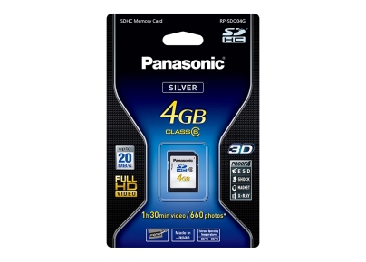 Panasonic RP-SDQ04GE1K 4GB. Емкость: 4 ГБ, Тип флэш-карты: SDHC. Вес: 2 г. Размеры (ШхГхВ): 24 x 2,1 x 32 мм, Скорость передачи: 20 МБ/с