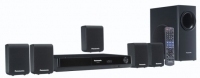 Panasonic SC-PT70. Тип проигрывателя оптический дисков: DVD проигрыватель. Поддерживаемый видеоформат: DivX,MPEG4. Выходные звуковые каналы: 5.1 канала, Номинальная RMS-мощность: 330 Вт, Аудио декодеры: Dolby Digital,Dolby Pro Logic II,DTS. Мощность центральной колонки: 55 Вт, Волновое сопротивление центральной колонки: 5 Ом. Среднеквадратичная мощность сателлитов: 220 Вт, Волновое сопротивление колонки-сателлита: 5 Ом