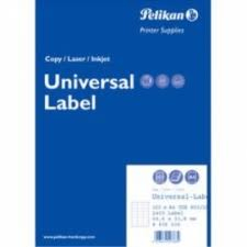 Pelikan CGE 851/100. Технология печати: Универсальный. Размер этикетки: 97 x 33.8 mm, Размеры упаковки (ШхГхВ): 218 x 308 x 20 мм, Масса брутто: 1,08 кг. Количество листов носителя в упаковке: 100 листов, Наклеек в упаковке: 1600 шт. Размеры бумаги: A4
