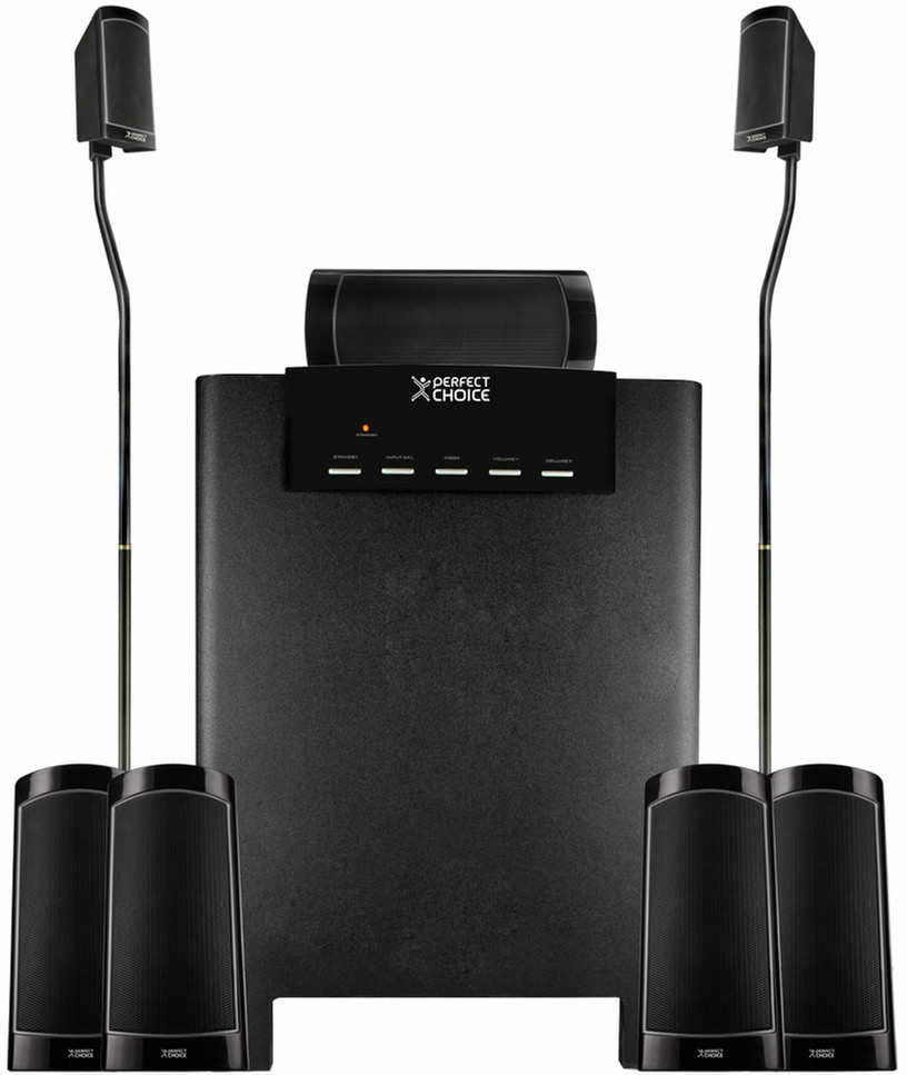 Perfect Choice PC-111771. Выходные звуковые каналы: 5.1 канала, Номинальная RMS-мощность: 170 Вт, Рекомендованное применение: Домашний кинотеатр. Тип усиливающего устройства: Amplifier, Форм-фактор усиливающего устройства: Встроенный, Выходной интерфейс усилителя/ресивера: RCA. Среднеквадратичная мощность сателлитов: 32 Вт, Satellite speaker tweeter diameter: 5,08 см (2"). Номинальная мощность передних колонок: 32 Вт, Front speaker tweeter diameter: 5,08 см (2"). Мощность центральной колонки: 16 Вт, Center speaker tweeter diameter: 5,08 см (2")