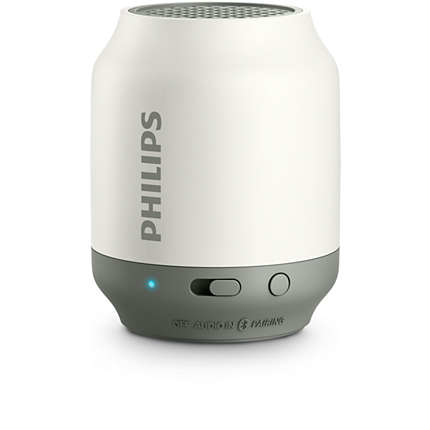 Philips BT25W/00. Выходные звуковые каналы: 1.0 канала, Диаметр динамика: 3,8 см. Номинальная RMS-мощность: 2 Вт. Технология подключения: Беспроводной, Интерфейс: 3,5 мм, Беспроводная технология: Bluetooth. Тип продукта: Mono portable speaker, Цвет товара: Серый, Белый, Дизайн: Цилиндр. Рекомендованное применение: Универсальный