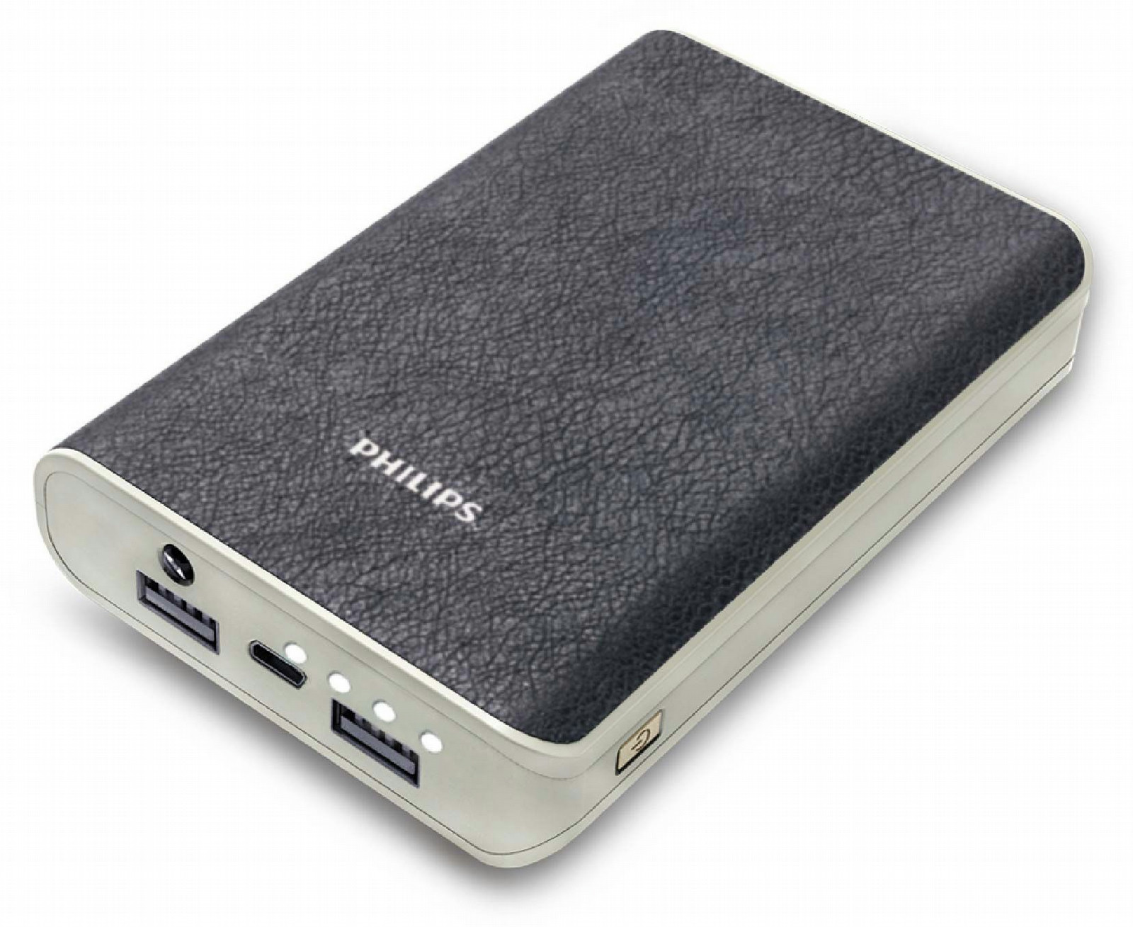 Philips DLP13006/97. Цвет товара: Черный, Cеребряный, Материал корпуса: Кожа, Совместимые устройства: Универсальный. Светодиодные индикаторы: Напряжение. Емкость батареи: 13000 мА·ч, Источник зарядки: USB, Выходное напряжение: 5 В. Ширина упаковки: 90 мм, Глубина упаковки: 35 мм, Высота упаковки: 175 мм. Ширина: 78 мм, Глубина: 23 мм, Высота: 103 мм