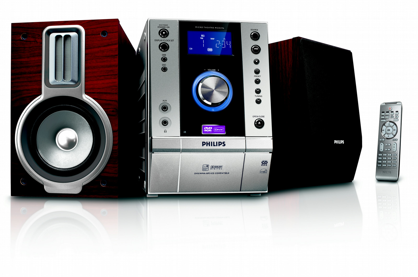 Philips MCD296/05. Дисплей: ЖК. Размеры упаковки (ШхГхВ): 345 x 442 x 275 мм, Масса брутто: 7,8 кг. Улучшения получения сигнала: Auto Store. Количество каналов: 40 канала, Порт подключения наушников: 3,5 мм
