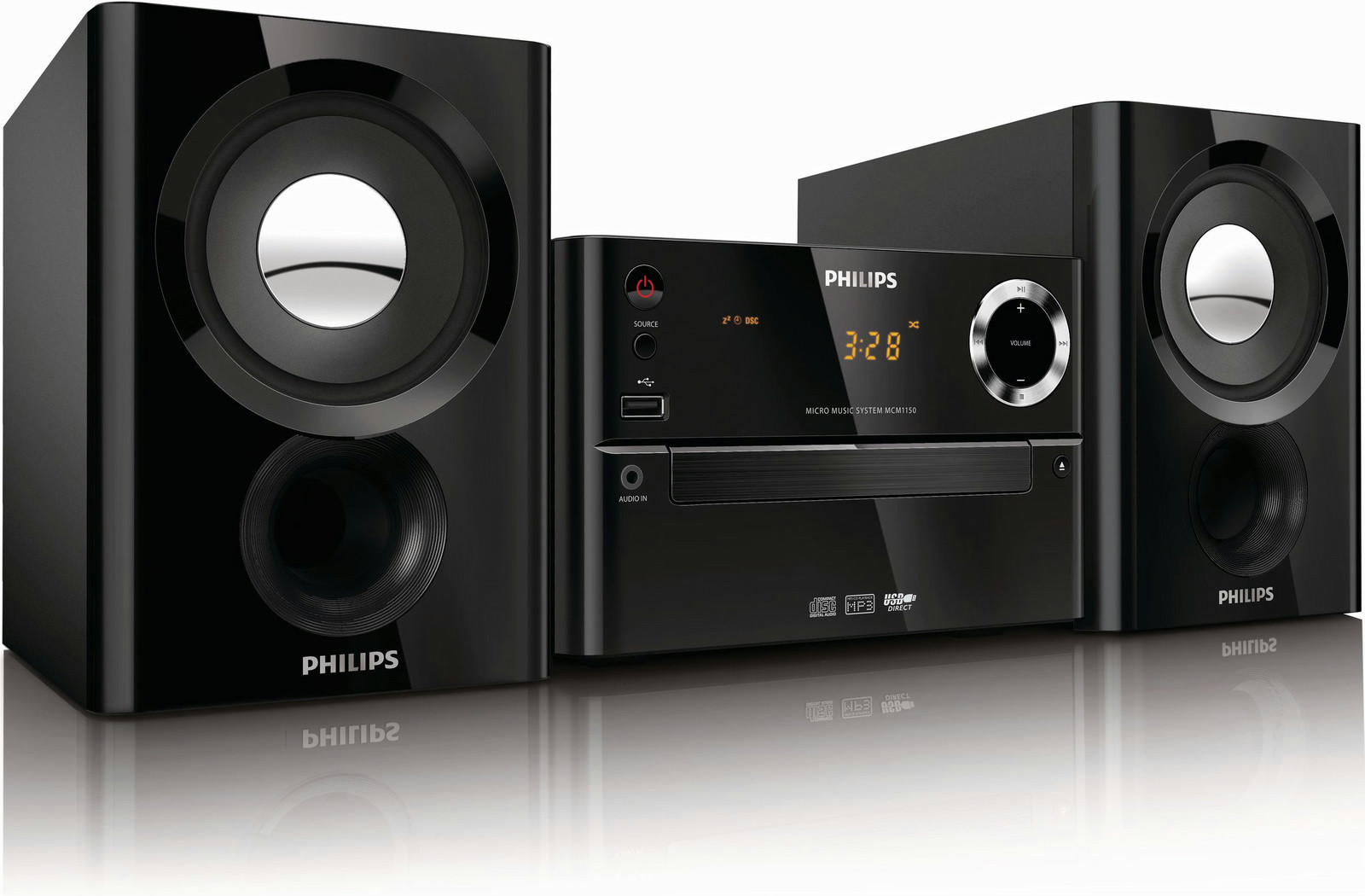 Philips MCM1150/55. Тип: Home audio micro system, Цвет товара: Черный, Число дисков: 1 дисков. Номинальная RMS-мощность: 20 Вт, Woofer diameter: 8,89 см. Поддерживаемые диапазоны радио: FM, Улучшения получения сигнала: Автопоиск, Auto tuning, Тип тюнера: Цифровой. Тип дисплея: LED. Поддерживаемые типы дисков: CD,CD-R,CD-RW, Режимы воспроизведения: Fast backward, Ускоренная перемотка вперед, Next, Previous, Повтор, Повторить все, Единоразовый повт