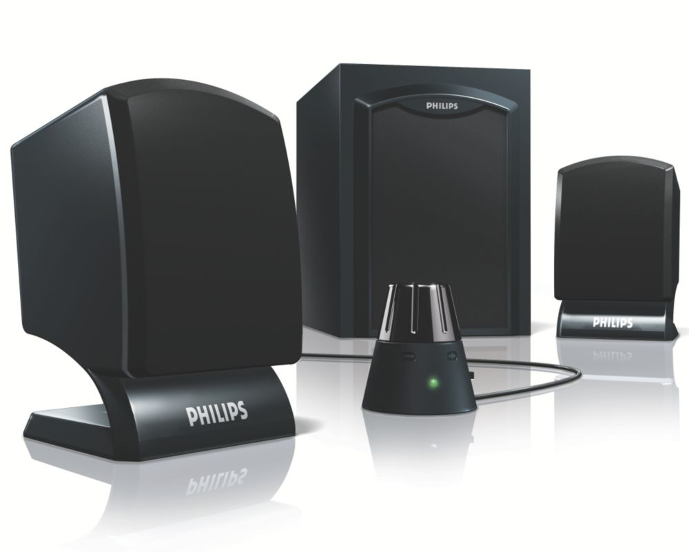 Philips SPA1310/93. Выходные звуковые каналы: 2.1 канала, Номинальная RMS-мощность: 12,6 Вт, Рекомендованное применение: Универсальный. Среднеквадратичная мощность сателлитов: 7 Вт, Satellite speaker woofer diameter (imperial): 6,35 см (2.5"). Номинальная мощность сабвуфера: 5,6 Вт. Источник питания: Кабель переменного тока, Входящее напряжение сети: 220 В, Частота входящего переменного тока: 50 Гц. Поставляемые кабели: Audio (3.5mm)