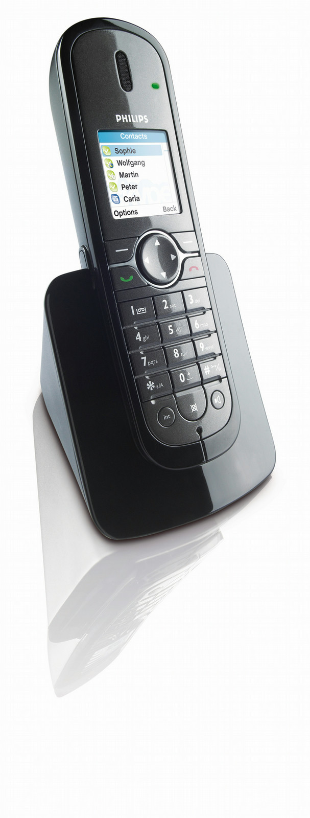 Philips VOIP8410B/37. Дисплей: CSTN, Разрешение экрана: 128 x 128 пикселей, Количество цветов экрана: 65536 цветов. Вместимость телефонной книги: 500 записей. Тип сигнала вызова: Полифонический. Емкость батареи: 750 мА·ч, Тип батареек: AAA, Время работы в режиме ожидания: 120 ч. Цвет товара: Черный