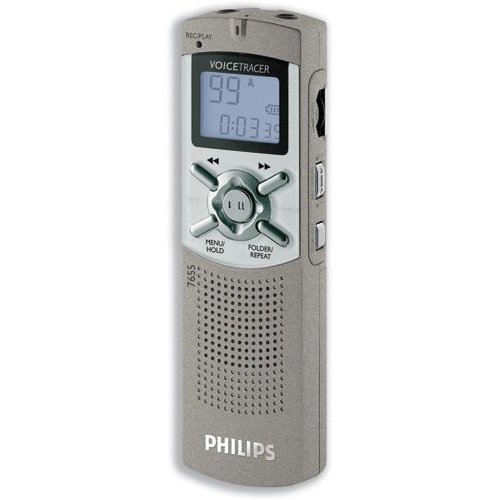 Philips Voice Tracer 7655. Максимальное время записи: 33 ч, Режимы записи: High Quality (HQ),Long Play (LP),Standard Play (SP), Диапазон частот: 500 - 3500 Гц. Оперативная память: 64 МБ. Тип дисплея: ЖК, Размер дисплея (ГхВ): 22 x 16 мм. Тип USB коннектора: Mini-USB B. Вес: 50 г