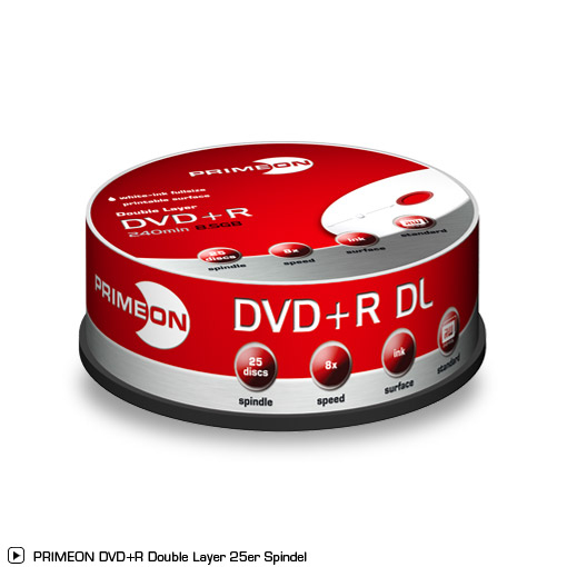Primeon 02-100-504 8.5ГБ DVD+R DL 25шт чистый DVD
