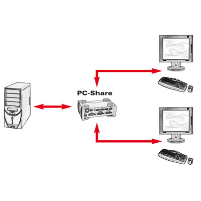 ROLINE PC-Share, 2 Users - 1 PC, USB. Максимальное разрешение: 1920 x 1440 пикселей. Материал: Пластик. Вес: 560 г. Размеры (ШхГхВ): 55 x 143 x 87 мм