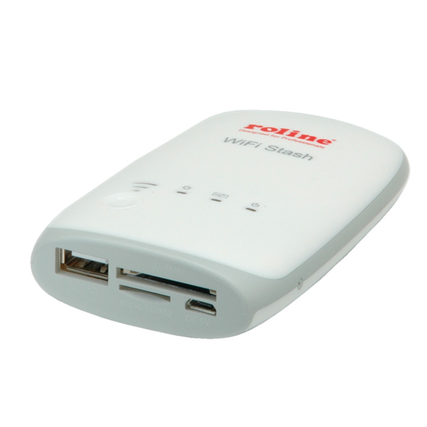 ROLINE 15.08.6256. Совместимые карты памяти: MMC, MS Micro (M2), Memory Stick (MS), MicroSD (TransFlash), MiniSD, SD, SDHC, Максимальный объем флеш-карты: 32 ГБ. Тип интерфейса: USB 2.0/Wi-Fi. Цвет товара: Белый. Ширина: 111 мм, Глубина: 66 мм, Высота: 16 мм. Поставляемые кабели: Micro-USB