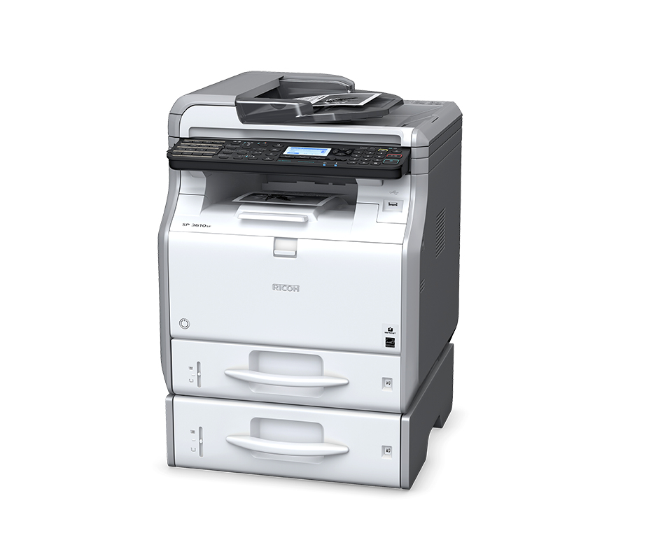 Ricoh SP 3600SF. Технология печати: Лазерный, Печать: Моно, Копирование: Моно. Скорость печати (ч/б, обычное кач., A4/US Letter): 30 стр/мин, Максимальное разрешение: 1200 x 1200 dpi, Стандартные языки принтера: PCL 5e, PCL 6, PostScript 3. Максимальное разрешение копирования: 600 x 600 dpi, Масштабирование копии: 25 - 400%, Максимальное число копий: 99 копий. Разрешение оптического сканирования: 600 x 600 dpi, Максимальная область сканирования: A4 (210 x 297), Тип сканирования: ADF. Стандартная вместимость на входе: 350 листов, Маскимальная вместимость на входе: 850 листов