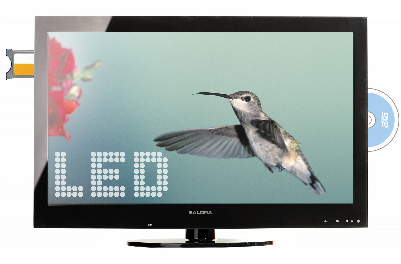 Salora 22LED2005TD. Диагональ экрана: 55,9 см (22"), Тип HD: Full HD, Разрешение экрана: 1920 x 1080 пикселей. Система цифрового формата сигнала: DVB-T, Тип тюнера: Цифровой. Номинальная RMS-мощность: 3 Вт. Smart режимы: Игры. Поддерживаемый видеоформат: XVID, Тип проигрывателя оптический дисков: DVD проигрыватель, Поддерживаемые типы дисков: CD,CD-R,CD-RW,DVD,DVD+R,DVD+RW,DVD-R,DVD-RW