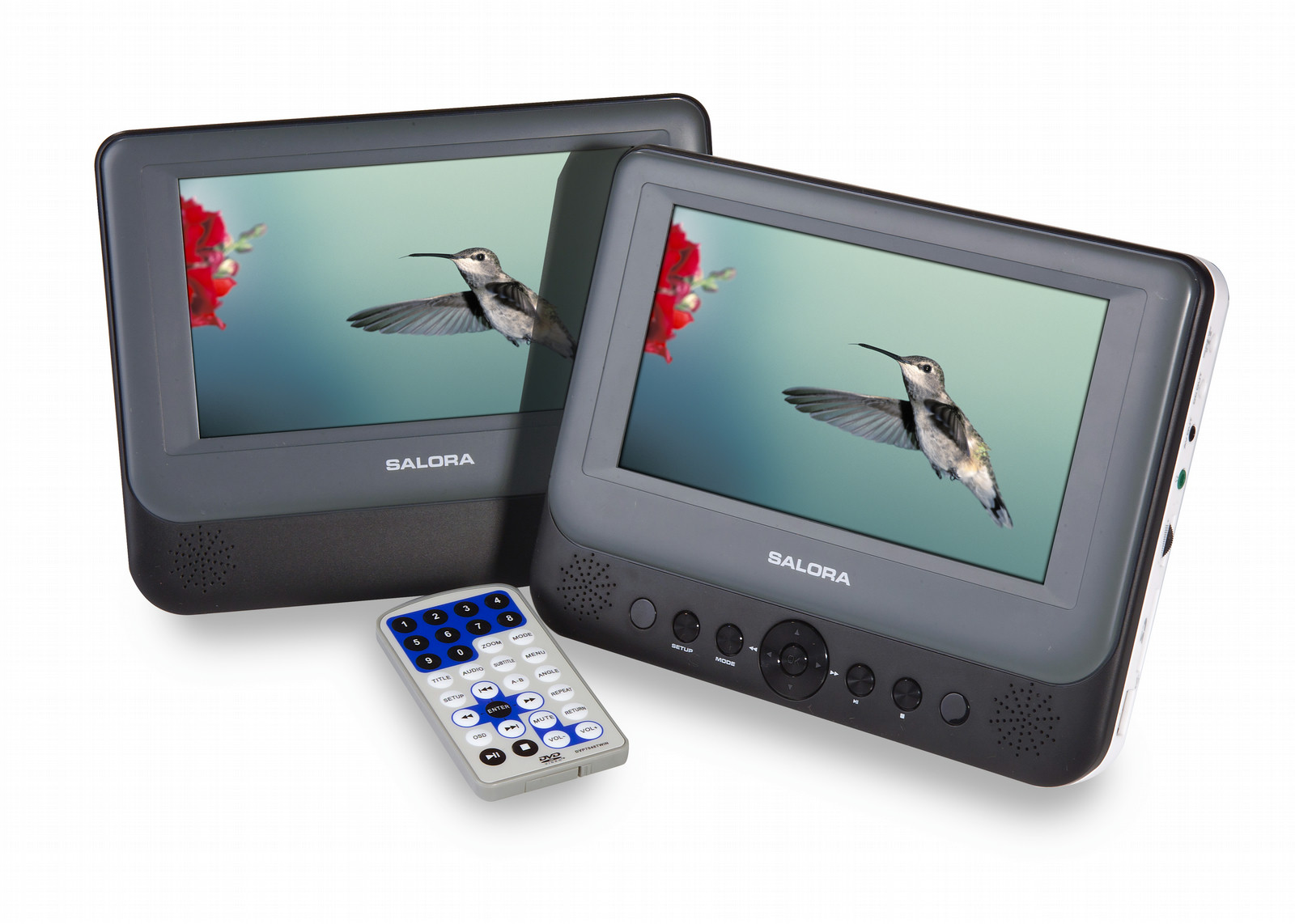 Salora DVP7048TWIN. Диагональ экрана: 17,8 см (7"), Дисплей: ЖК, Размер диагонали экрана (метрич.): 18 см. Поддерживаемый видеоформат: MPEG4,XVID, Поддерживаемые форматы аудио: MP3, Поддерживаемые форматы изображения: JPG. Совместимые карты памяти: MMC,SD. Ширина: 209 мм, Глубина: 39 мм, Высота: 165 мм. Тип источника питания: Аккумулятор