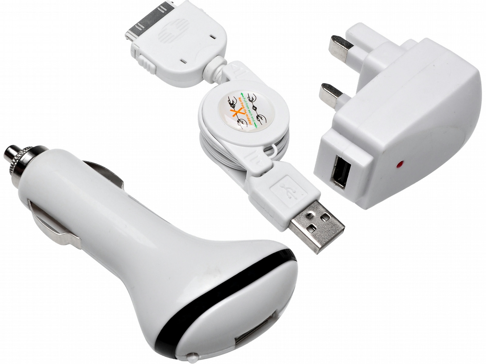 With the Sandberg 3in1 charger kit for iPhone, you’ll always have a charging cable to hand whether you’re at home or on the move. And you can use it with both your iPhone and iPod. The cable features a practical retracting mechanism, making it easy to carry around with you.