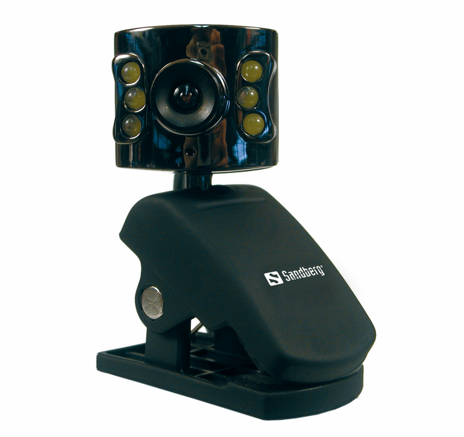 The Sandberg NightCam is a camera for your computer that allows you to record live pictures, take still images and let your friends see you while chatting on the Internet. Cameras always require good lighting conditions to produce a clear picture. However, the Sandberg NightCam is equipped with Night Vision, so the picture is always clear - even in dark rooms. The camera is made of sturdy metal. It can be turned in any direction and is mounted on a flexible clip foot that can either be placed on a flat surface or clipped on to a flatscreen, etc. The lens is made of glass, which produces a clearer and more detailed picture than plastic, as well as greater depth and better sharpness.