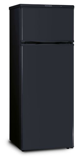 Severin KS 9763. Тип корпуса: Отдельностоящий, Цвет товара: Черный, Дверная петля: Справа. Суммарная полезная емкость: 212 л. Полезная емкость холодильника: 166 л. Размещение морозильной камеры: Расположен сверху, Полезная емкость морозильной камеры: 46 л, Вместимость морозильной камеры: 2 кг/24ча. Класс энергоэффективности: A+, Годовое потребление энергии: 208 кВт·ч
