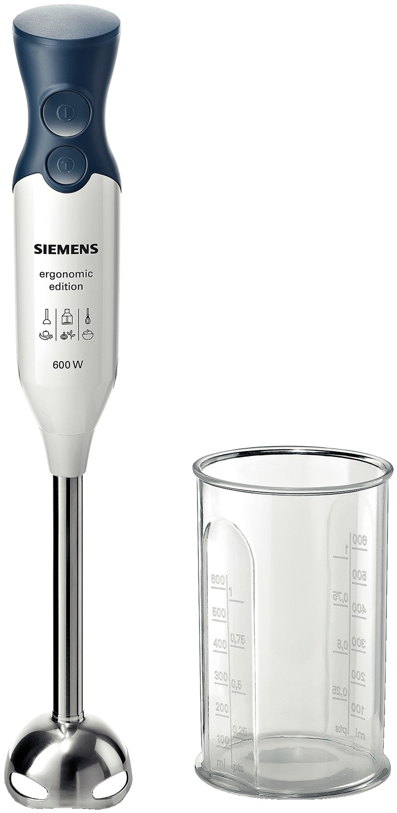 Siemens MQ 66110. Тип: Погружной, Цвет товара: Синий, Белый, Длина шнура: 1,4 м. Материал миски: Пластик. Мощность: 600 Вт, Входящее напряжение сети: 220 - 240 В. Ширина: 55 мм, Глубина: 62 мм, Высота: 210 мм