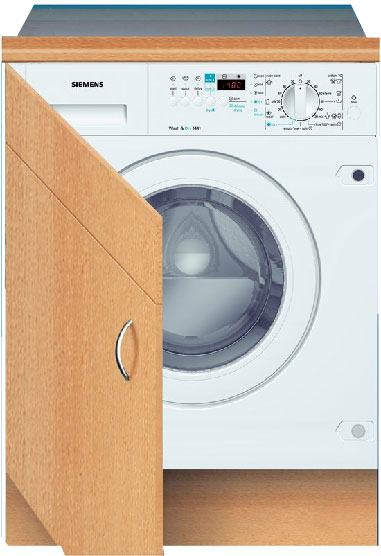 Siemens WDI1441EU. Тип загрузки: Фронтальная загрузка, Тип корпуса: Встроенный, Цвет товара: Белый. Класс стирки: A. Класс энергоэффективности: C