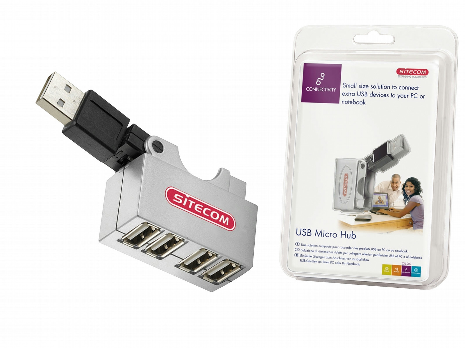 Sitecom USB micro hub. Скорость передачи данных: 12 Мбит/с. Минимальные системные требования: USB. Вес: 30 г, Масса брутто: 130 г. Интерфейс: USB 1.1, Размеры (ШхГхВ): 42 x 22 x 32 мм, Совместимые операционные системы: Windows 98SE, 2000, ME, XP
