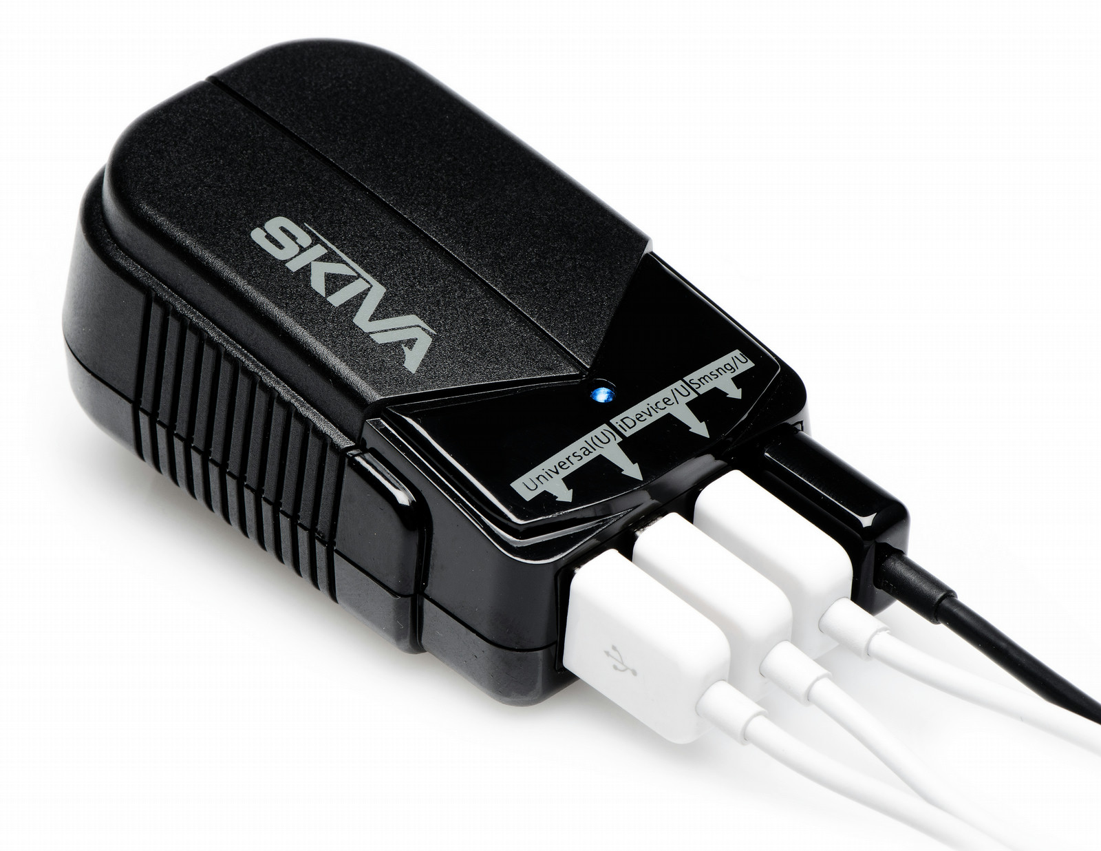 Skiva AC104. Тип зарядного устройства: Для помещений, Совместимые устройства: Универсальный, Тип источника питания: Кабель переменного тока. Цвет товара: Черный. Выходное напряжение: 5 В, Выходной ток адаптера: 4 А. Поставляемые кабели: USB