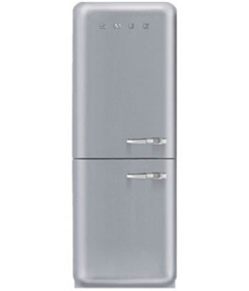 Smeg FAB32LXN1. Тип корпуса: Отдельностоящий, Цвет товара: Cеребряный, Дверная петля: Левосторонний. Суммарная полезная емкость: 304 л, Суммарная максимальная емкость: 328 л, Тип климата: SN-T. Полезная емкость холодильника: 229 л. Размещение морозильной камеры: Расположен снизу, Полезная емкость морозильной камеры: 75 л, Вместимость морозильной камеры: 10 кг/24ча. Класс энергоэффективности: A++, Подключенная нагрузка: 140 Вт, Годовое потребление энергии: 229 кВт·ч
