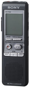 Sony IC digital recorder ICD-P320. Максимальное время записи: 7,3 ч, Диапазон частот: 260 - 6800 Гц. Оперативная память: 64 МБ. Диаметр динамика: 2,8 см. Время работы батареи (макс): 22 ч. Вес: 680 г