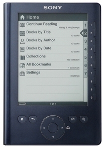 Sony PRS-300. Диагональ: 12,7 см (5"). Подерживаемые форматы документов: bbeb,pdf,rtf. Тип интерфейса: USB 2.0. Время работы батареи (макс): 336 ч, Технология батареи: Литий-ионная (Li-Ion), Напряжение батареи: DC 5.2/3.7. Минимальный процессор: 800 MHz, Минимальный объём ОЗУ: 512 МБ, Минимальный объём жесткого диска: 20 МБ