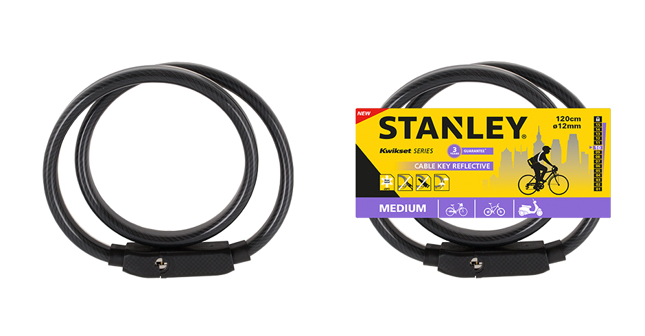 Stanley 81316385111. Тип: Cable lock, Цвет товара: Черный, Материал чехла: Винил. Длина: 120 см, Вес: 709,3 г, Наружный диаметр: 1,2 см