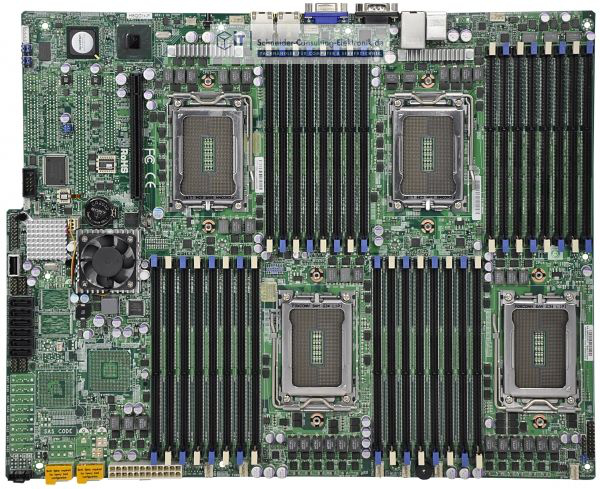 H8QGi+-Ф - SWTX, сокет G34, компания AMD SR5690 + SP5100, 32 модулей памяти DIMM, ECC/без ECC 1600/1333/1066 МГц, гигабитный Ethernet, приложение Intel 82576, 6х разъема SATA2.0, PCI-е 2.0 х16, 16мб AMI БИОС, Навальный пакет